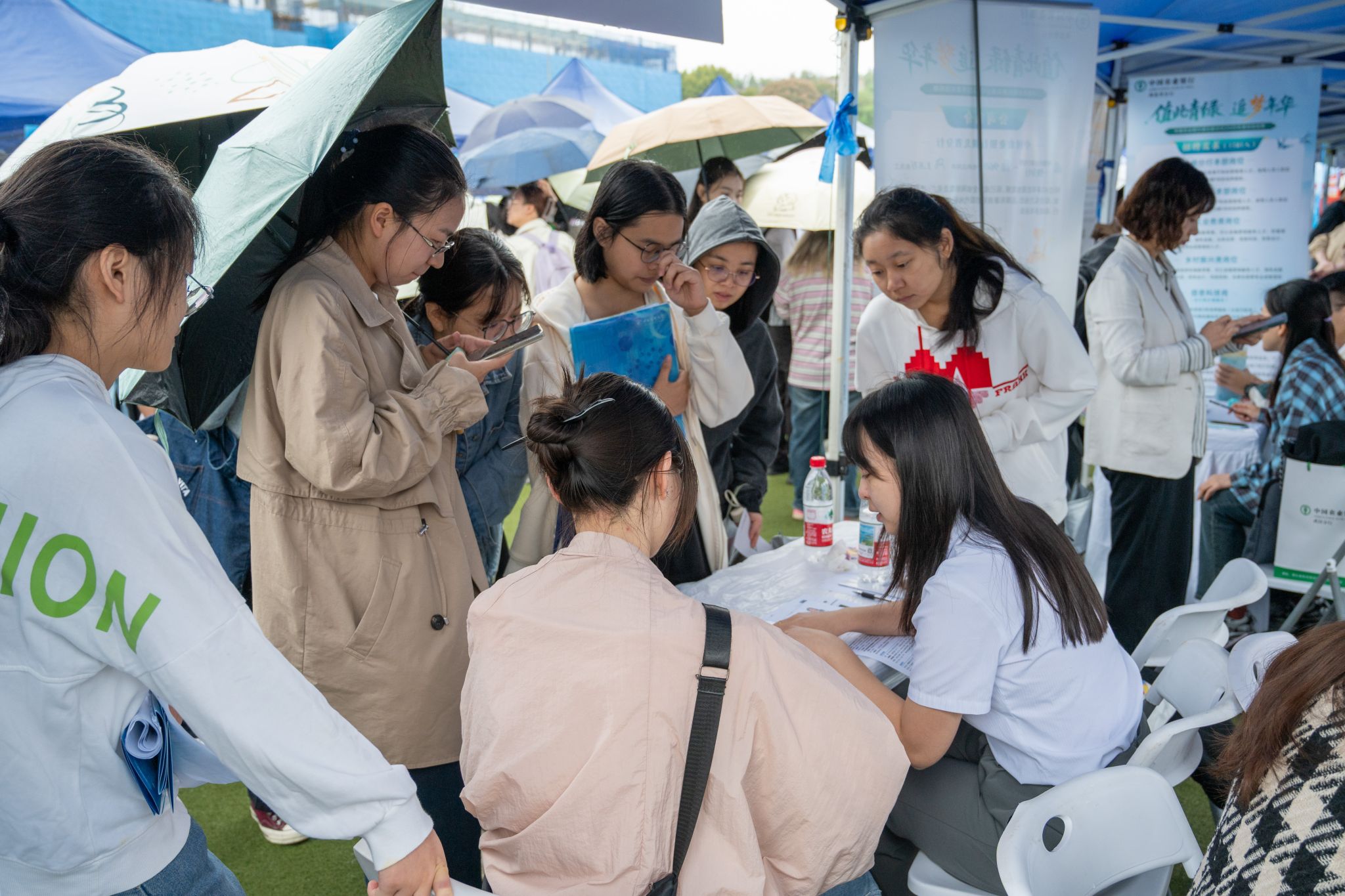 毕业生与用人单位交流(记者 晏华华 学通社记者 王文硕 摄)