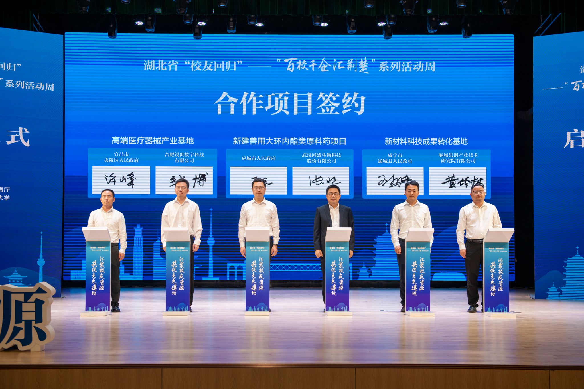启动式上,湖北省“校友回归”logo正式发布,宜昌市、咸宁市围绕区位优势、产业优势等作推介。8个合作项目和平台签约揭牌,涉及数字经济、低空经济、生命健康等领域。