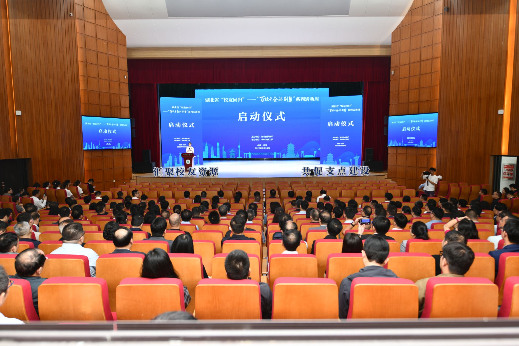 南湖新闻网讯(记者 徐行 晏华华)9月24日,湖北省“校友回归”——“百校千企汇荆楚”系列活动周在我校启动。活动由湖北省教育厅主办,华中农业大学、湖北工业大学、武汉科技大学、湖北大学共同承办。全省17个市州和133所高校,校友代表、校友企业代表等参加。