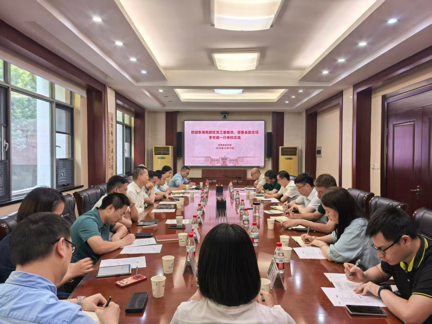 座谈会上,郭刚奇对李世庭一行表示欢迎。他从办学历史、学科建设、科技创新、社会服务等方面介绍了学校事业发展情况。郭刚奇表示,学校始终以服务国家战略和区域经济社会发展为己任,希望以此次交流为契机,进一步深化与东湖高新区的合作,共同探索校地合作新范式,为光谷的高质量发展和湖北加快建设全国构建新发展格局先行区贡献力量。他提到,学校目前已有近百家校友企业落户东湖高新区,尤其是以科前生物等为代表的科技型企业已成为光谷生物城的支柱企业,希望东湖高新区一如既往关心支持华农校友企业的发展,助力更多校友企业做大做强。 李世庭介绍了东湖高新区(光谷)发展概况、新兴产业布局、公共研发服务平台建设及相关支持政策等。他高度评价了华中农业大学在生命科学、农业科技等领域的突出贡献和人才培养质量,强调双方深厚的合作基础和广阔前景。
