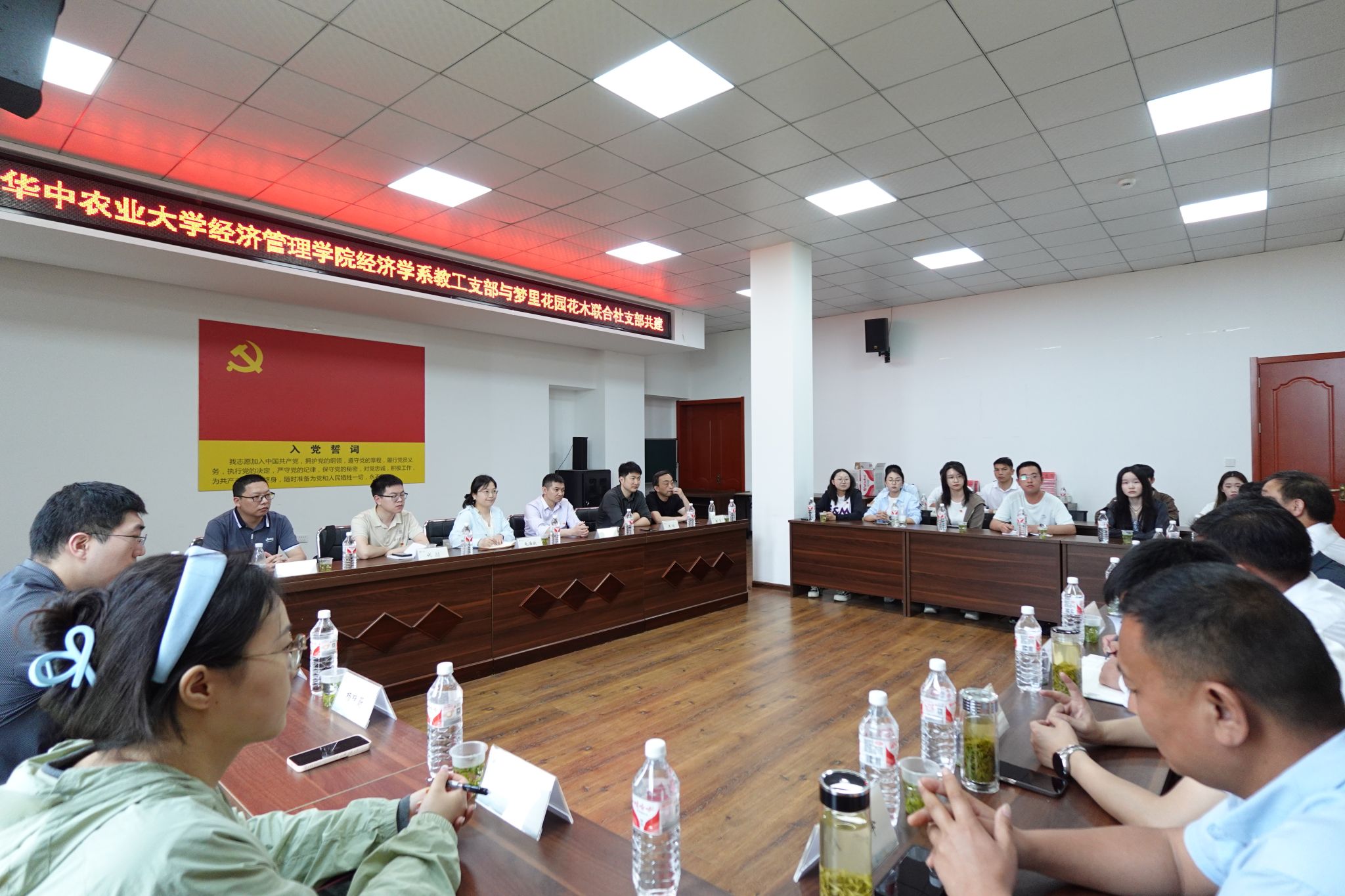 4月20日,华中农业大学经济管理学院经济学系教工党支部联合经济学类专业学生党支部17名师生党员,赴湖北孝昌梦里花园花木联合社开展“党建引领聚合力,校社共建促振兴”联学共建活动。本次活动以“理论联学、实践共促、发展共谋”为主线,通过红色实践、产业调研、座谈交流等形式,探索党建引领下高校智力资源与乡村振兴需求深度融合的创新路径。